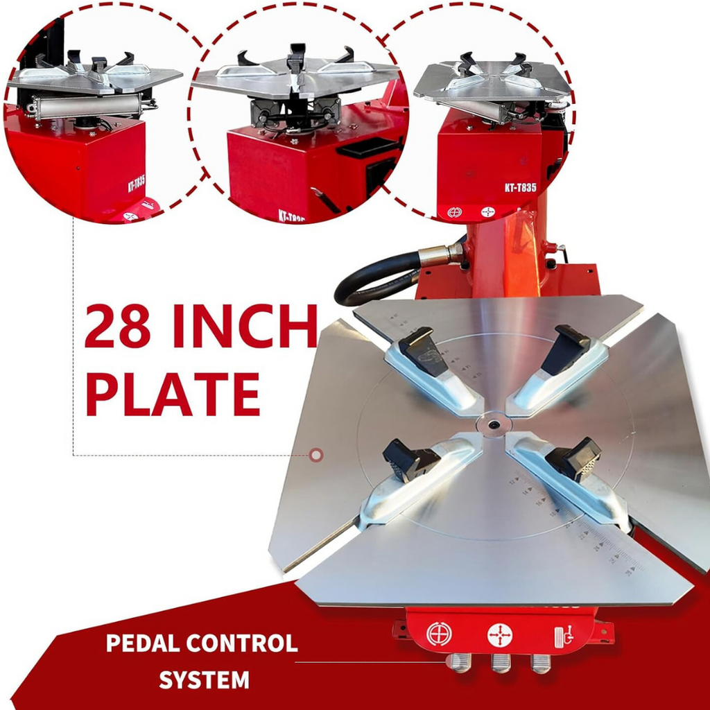 Upgrade your garage with the KT-T835 Tire Changer, a reliable companion that effortlessly blends power and convenience. Take control of your tire maintenance routine and experience the ease of professional-grade results, all from the comfort of your home garage. With the KT-T835, redefine your approach to tire care and enjoy a smoother ride with every wheel change.